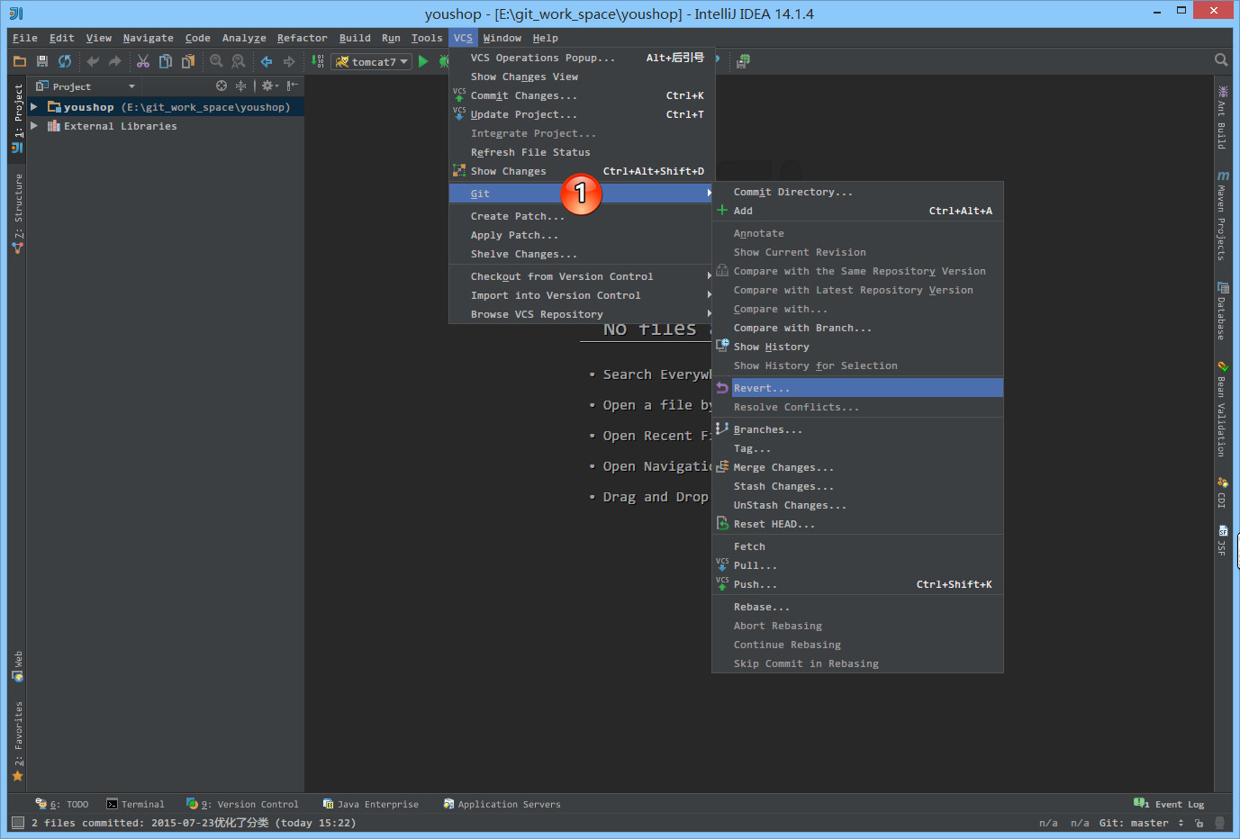 - 如上图标注 1 所示,当前项目使用的版本控制是